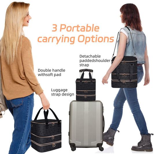 UOZL Nail Polish Bag organizer-Holds 40 bottles(15ml-0.5fl.oz),Nail Polish Carrying Case Clear Multifunctional Cosmetic Travel Cases Makeup Bags Black