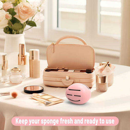 YalsFTY Silicone Makeup Sponge Holder, Triple-Sided Breathable Beauty Blender Case for Travel and Daily Use, Shatterproof Storage, Quick-Drying, and Fits Sponges - Pink