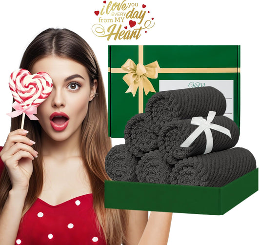 VOOVA & MOVAS Grey Washcloths (6PC, 13"x13") - 100% Cotton | Thick | Quick Dry | Light Weight, 6 Pack Hand Towels, Wash Cloths for Showering, Bathroom Gift Set, Dark Gray