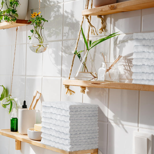 GOLD TEXTILES 120 Pack Economy White Washcloths Set (12x12 inches) - Cotton Blend Commercial Grade Cleaning Rags, Quick Drying & Soft Face Cloths, Fingertip Towels for Bathroom, Spa, Gym, and Kitchen