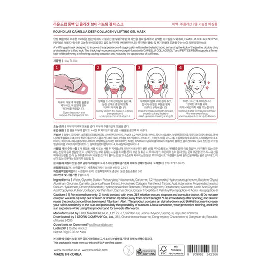 ROUND LAB Camellia Deep Collagen V Lifting Gel Mask 4EA | Double-chin Mask, Instant Cooling & Depuffing, Face Toning Belt, Collagen V-line, Improves Sagging Skin, Lifting & Firming 10g/0.35oz