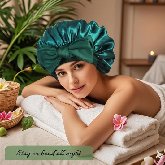 1+3 Large Satin Bonnets with Scrunchies for Women, Double Layer Hair Bonnet Tie Bonnet for Sleeping Braids Curly Hair, F