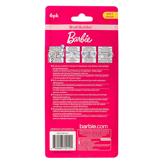Brush Buddies 6 Pack Barbie Toothbrushes for Kids, Children's Toothbrushes, Soft Bristle Toothbrushes for Kids