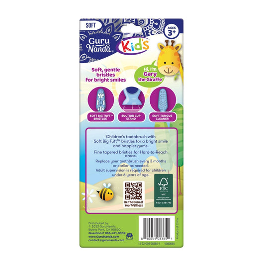 GuruNanda Kids Toothbrush with Suction Cup & Fun Animal Designs - Soft Bristles for Healthy Gums- Non-Slippery & Mess-Free Toothbrush, 3+ Age- 4 Count