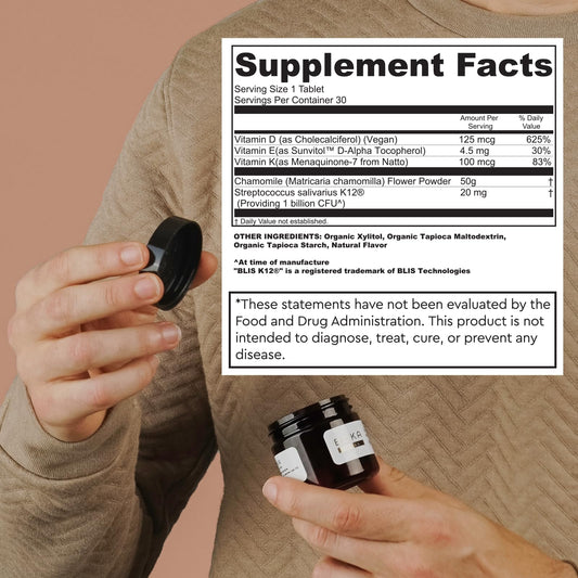 Boka Vital Bite Oral Pre + Probiotics - Sugar-Free Nut-Free Chewable Dental Probiotics for Teeth and Gums with BLIS K12, Vitamin D3 K2 for Men Women, Freshens Breath - Peppermint, 30 ct