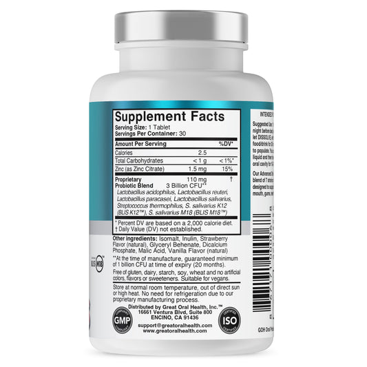 Atlantis Nutrition Oral Probiotics Chewable Tablet - Dental Probiotic for Gum Care & Teeth Care - Bad Breath Treatment for Adults - 3 Billion CFU Probiotic Blend - Strawberry Flavor - 60 Tablets