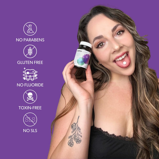 SuperTeeth Chewable Dental Probiotic for Adults & Kids | Support Healthy Teeth & Gums | Oral Health | Fights Bad Breath | BLIS M18 | 60 Mint Flavored Tablets | Fluoride & Sugar Free | Vegan Supplement