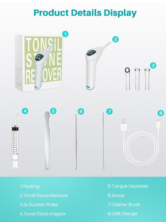 Tonsil Stone Remover Tool, Upgraded Electric Tonsil Stone Removal Kit - with Built-in LED Light & 6-Level Suction for Bad Breath Prevention, Oral Suction Device for Stone Removal
