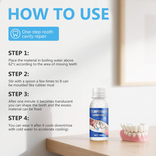 Tooth Repair Kit, Moldable Tooth Filling Repair Kit, Fake Teeth DIY at Home, Fixing Missing & Broken Tooth Replacements, with 4 Dental Tools-V04