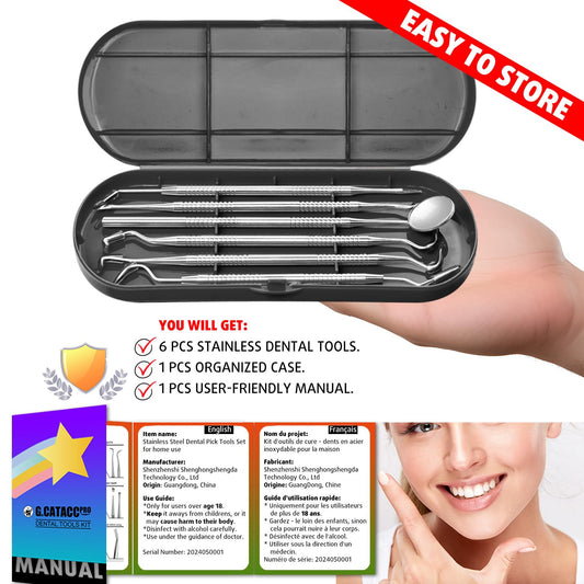 G.CATACC Dental Tools, Plaque Remover for Teeth, Metal Dental Pick Teeth Cleaning Tools Kit, Stainless Steel Oral Care Hygiene Kit with Tooth Scraper Plaque Tartar Remover - with Case