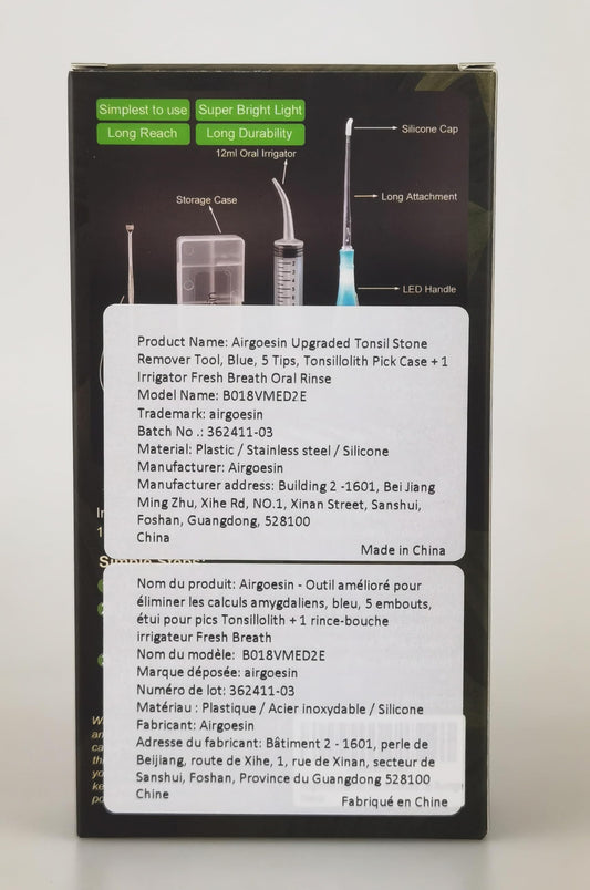 Airgoesin™ Upgraded Tonsil Stone Remover Tool, Blue, 5 Tips, Tonsillolith Pick Case + 1 Irrigator Fresh Breath Oral Rinse