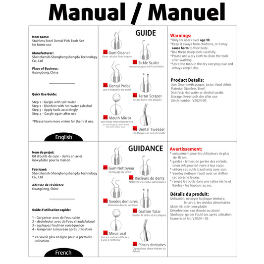 7pcs Dental Tools, Dental Pick Teeth Cleaning Tools Hygiene Kit, Professional Stainless Steel Tooth Scraper Plaque Tartar Cleaner - with Case, Personal Using, Pets - Teeth Cleaning Kit