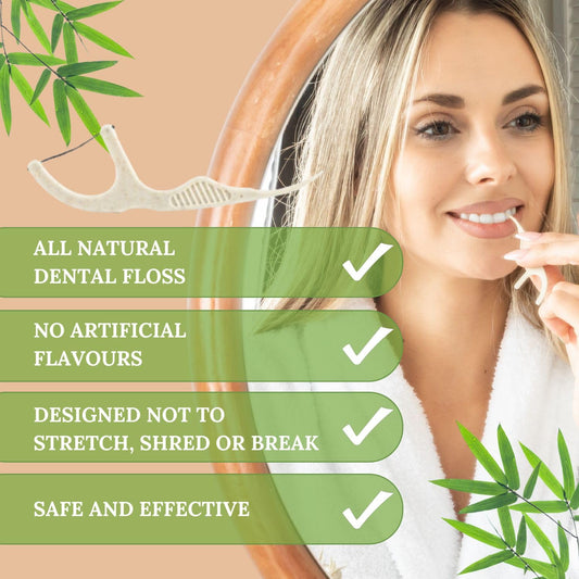 Natural Dental Floss Picks 75 Pack – Organic Biodegradable Floss Sticks with Strong Bamboo Charcoal Thread & Vegan Cornstarch Handle – No Plastics, No Artificial Flavours - Kraft Paper Box