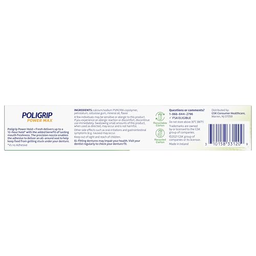 Super Poligrip Power Max Power Hold + Fresh Denture Cream, Premium Peppermint - 2.2 oz x 4