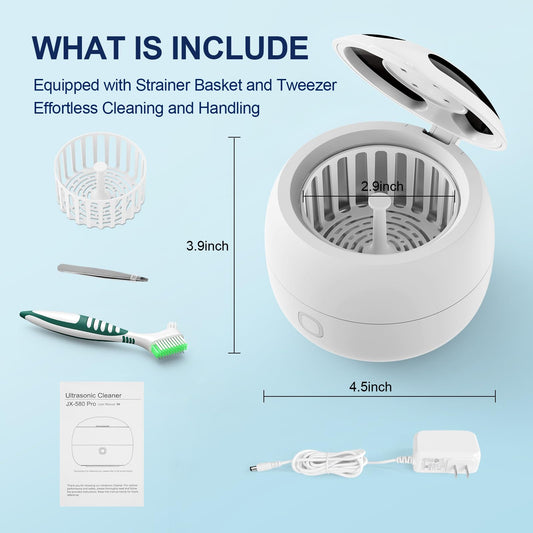 2025 Enhanced Ultrasonic Retainer Cleaner, 2X Efficiency, 45kHz Dentures Cleaner Machine with UV Lights&4 Clean Modes, Dental Cleaning Pod for Aligner, Nightguard, Mouth Guards, Jewelry, Rings, etc