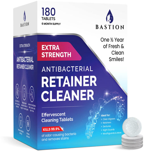 Retainer Cleaner & Denture Cleanser - 180 Effervescent Tablets 6 Month Supply Removes Stains, Discoloration, Odors, Plaque Clear Aligners, Mouth Night Guard, All Dental/Oral Appliances