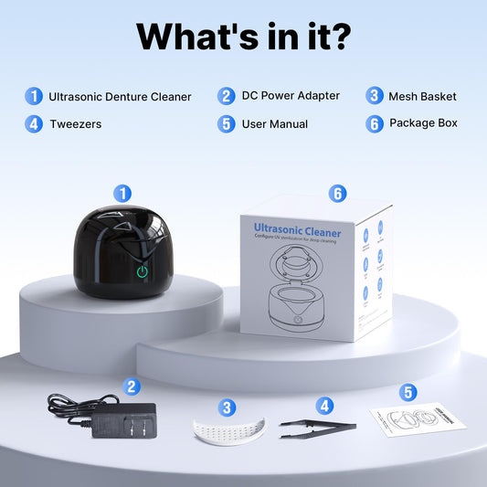 Ultrasonic Retainer Cleaner Machine Denture Cleaning Pod Portable Night Guard Cleaner for Mouth Guards, Jewelry Cleaner with Digital Timer, Dual Cleaning Mode