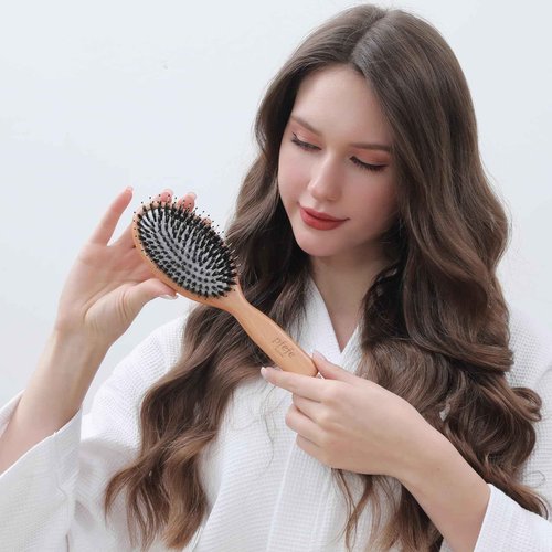 Boar Bristle Hair Brush - Natural Beechwood Detangling Brush for Men & Women, Soft Wooden Bristles Bursh with Travel Bag, Hairbrush for Long Short Thick Curly Wet Dry Hair