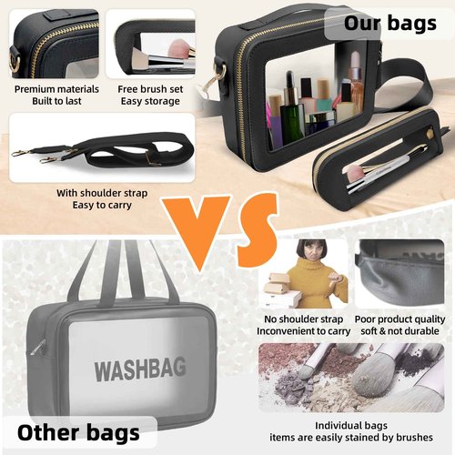 LapinPowUp Clear Makeup Bag for Stadium Events, Cute Waterproof Travel Cosmetic Bag with a Separate Stylish Brush Pouch for Concerts (black)