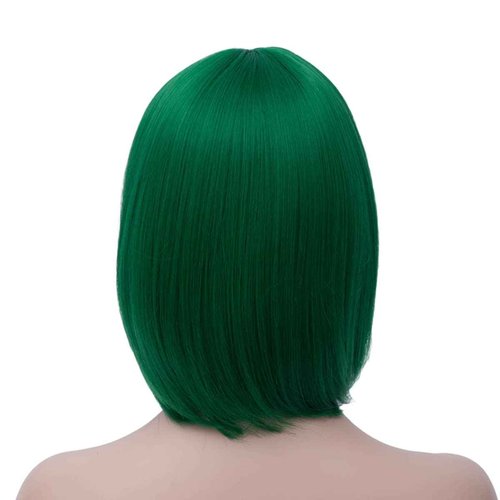 FOVER Short Green Wig with Bangs - Straight Synthetic Bob Wig for Women - St. Patrick's Day Party Costume - FE014GR