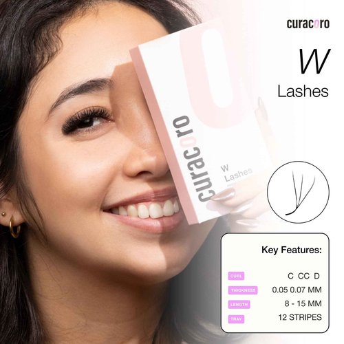 Curacoro W Eyelashes Extensions - 3D Handmade Volume Eyelashes, 0.05 C Curl 10mm Length, Full Fluffy Volume Look, Long Lasting & Easy Application