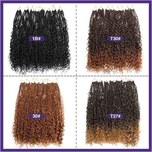 Goddess Box Braids Crochet Hair with Curly Ends 24 Inch 4 Spirals Boho Braids 8 Packs Pre Looped Synthetic Braiding Hair Extension Crochet Hair for Black Women T30#