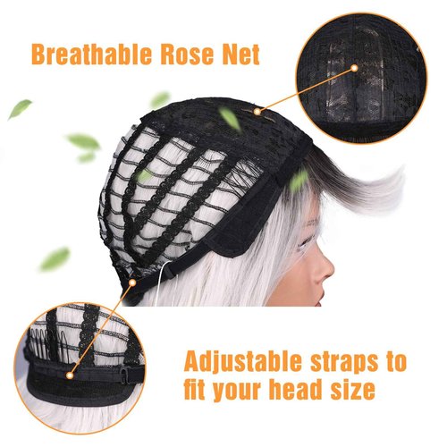 FAVE Ombre Grey Wig with Bangs Long Wavy Wigs for Women 28 Inches Middle Part Silver Wigs Gray White Synthetic Wig for Daily Party Use