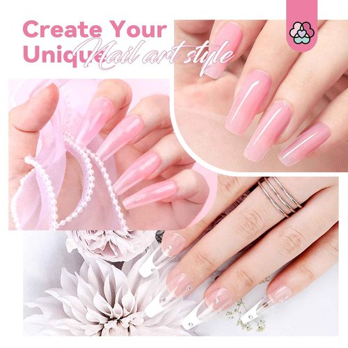 SAVILAND Poly Gel Nail Kit, 2PCS 30ML Gel Extension Kit with Mini Nail Lamp Slip Solution, Clear Pink Poly Kit with Protector Stickers Dehydrator PH Bond For Starter Beginner Art Design Salon Home
