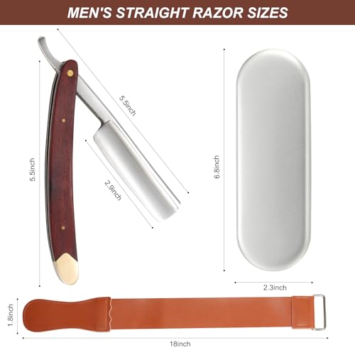 Straight Razors for Men Vintage Straight Razor with Wooden Handle and Steel Straight Razor Blade - Professional Straight Edge Barber Razor Set with Iron Box and Leather Strop