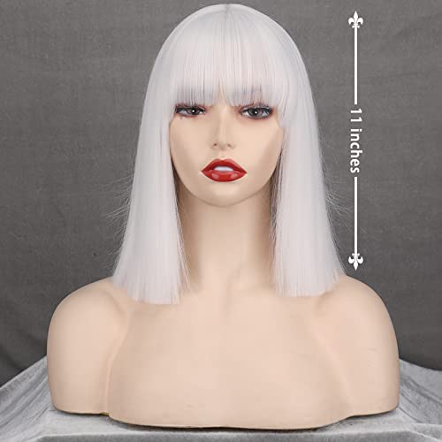 MERISIHAIR Short Bob White Wig with Bangs Silver White Short Wigs for Women Straight Bob White Cospaly Hair Wig for Daily Party Halloween