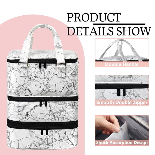 Nail Polish Organizer Bag with Travel Case for 30+ Bottles & Nail Lamp - Purple