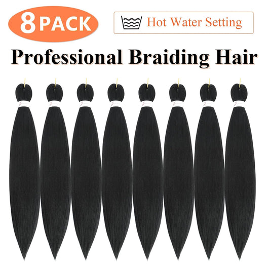 24-Inch Pre-Stretched Braiding Hair - 8 Packs Soft Yaki Texture for Crochet & Twists