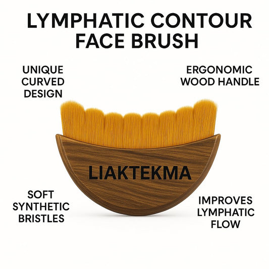 Lymphatic Contour Face Brush – Lymphatic Drainage Tool with Ergonomic Wooden Handle for Dry Brushing, Jawline Sculpting, Facial Massage, Puffiness Reduction & Fatigue Relief for Glowing Skin (1 pcs)