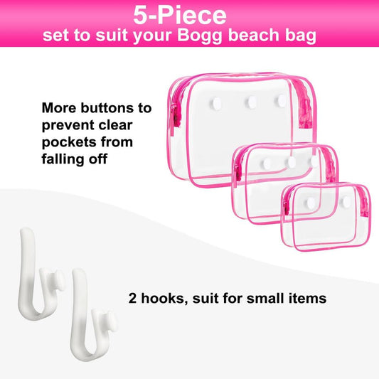 Clear Bogg Beach Tote Bag Set - 3 Packs with 2 Insert Hooks for Travel & Makeup Organization