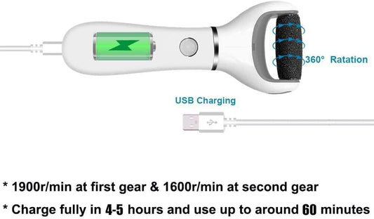 Rechargeable Electric Foot Scrubber & Callus Remover - Pedicure Tool for Cracked Heels, Includes 2 Roller Heads, Blue
