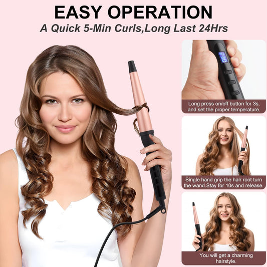 Professional Tapered Curling Wand - 1/2-1 Inch Ceramic Iron with LCD & 14 Heat Settings