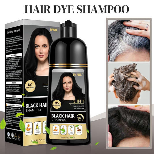 Ivnil 3-in-1 Black Hair Dye Shampoo for Gray Coverage - Herbal Formula for Men & Women, 400ML