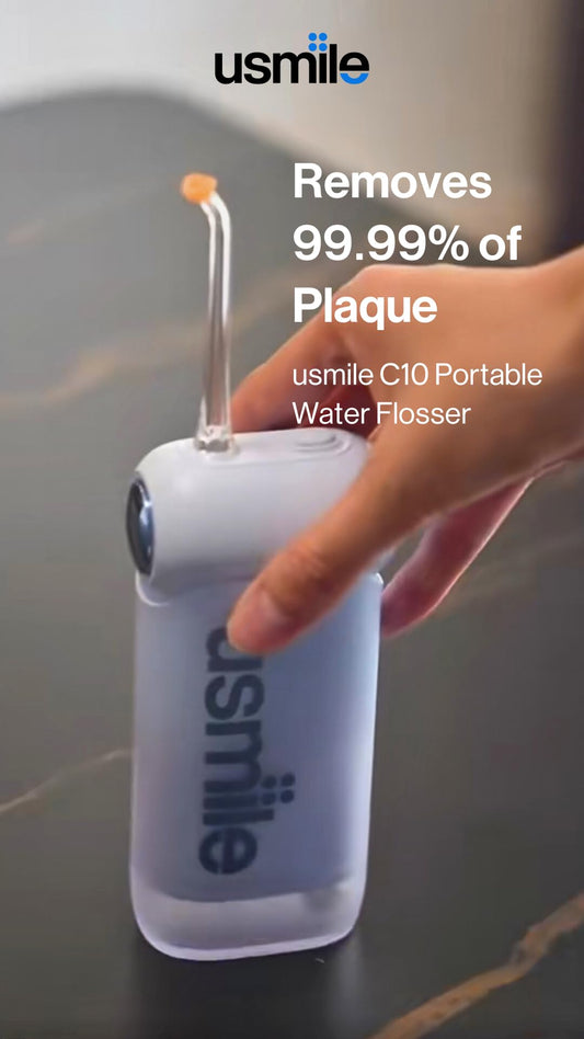 usmile C10 Portable Water Flosser – Travel-Friendly, 95-Day Battery, 4 Modes, 360° Nozzle, 180ml Tank, IPX7 Waterproof, Dentist-Recommended for Braces, Implants & Sensitive Gums (Blue)