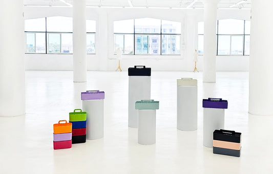 New Plastic Portable Makeup Organizer Caddy Tote Divided Basket Bin with Handle, for Bathroom Storage - Holds Blush Makeup Brushes, Made In USA (Orion Gray)