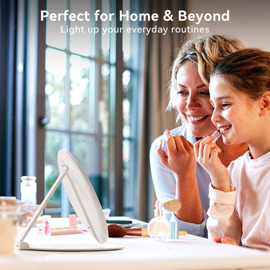 Auxmir Rechargeable Travel Makeup Mirror with Light, 3 Color Portable & Foldable Traveling Mirror, 8" Lighted Makeup Mirror, Dimmable & Lightweight Vanity Mirror, Travel Essentials