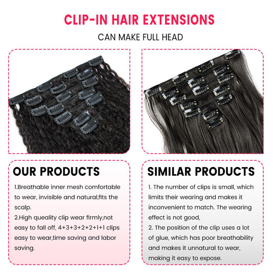 Boyusijf Kinky Straight Clip-in Hair Extensions - 100% Real Human Hair, 7Pcs, 100g Seamless, TP1B/27, 12 Inch for Black Women