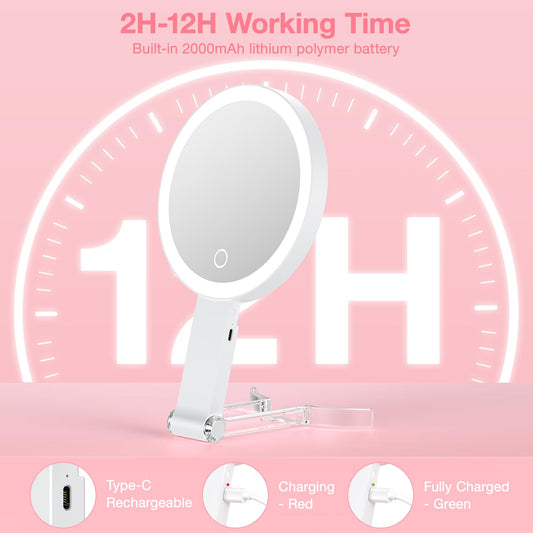 Benbilry Lighted Makeup Vanity Mirror, 10X Magnifying Mirror with Light 3 Colors, Adjustable Brightness & Stand, Tabletop & Hanging, 3 in 1 Portable Type-C Rechargeable, White