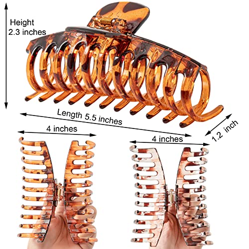 5.5 Inches Extra Large Hair Clips for Long Thick Hair Women¡¯s Jumbo Hair Claw Clips 2 Counts in Set Hair Accessories (light leopard and coffee leopard)