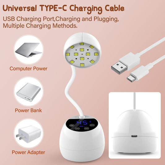 UV LED Nail Lamp Cordless 36W Mini UV Light for Gel X Nails Tips,Portable Hands Free Flash Cure Light,USB Rechargeable Nail Dryers with Sensor & 4 Timers,Rotatable Gooseneck Manicure Gel Polish Lamp