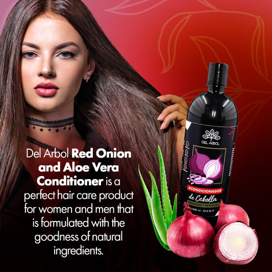 Onion Hair Conditioner DEL ARBOL. Red Onion and Aloe Vera Hair Strength Conditioner - Boosts Shine, Revitalizes Thinning Hair- Paraben Free - Family Size 33.8 fl. oz