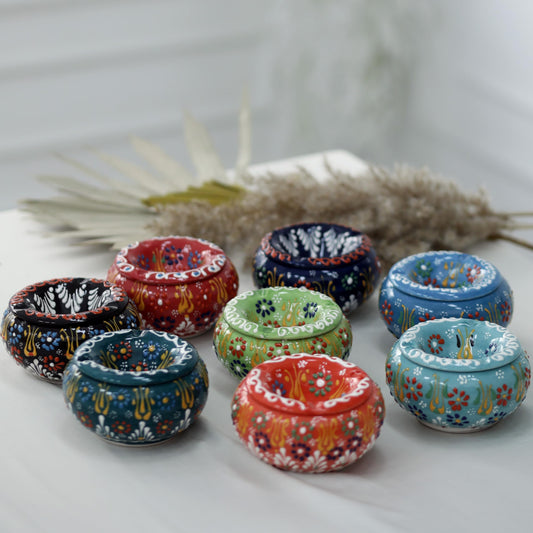 Decorative Ceramic Jar-Colorful Decorative Jar with Lid-Handmade Small Decorative Jar-Windproof Unique Jars-Turkish Home Decor (Lime Green)