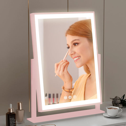 KPIONT Hollywood Vanity Mirror with Lights, 360 Rotation LED Lighted Makeup Mirror, 3 Color Lighting Modes, Portable Tabletop Mirror for Bedroom, Pink