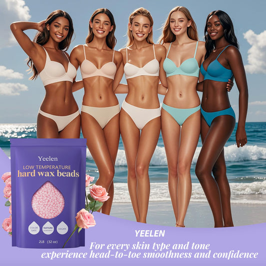 Hard Wax Beads 2LB Waxing Beads: Wax Beads for Sensitive Skin Bikini Wax Beans Brazilian Waxing Face Lip Eyebrow - Bulk Ideal for Salons and Home Use (Pink)