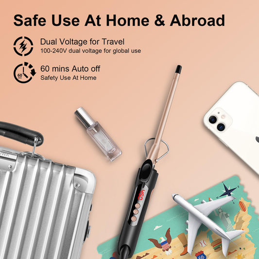 MELYDO 1/2 Inch Curling Iron for Short Hair & Long Hair, Half Inch Tourmaline Ceramic Curling Iron with Auto Shut-Off, Dual Voltage Small Barrel Curling Tongs Wand for Travel, Glove Include