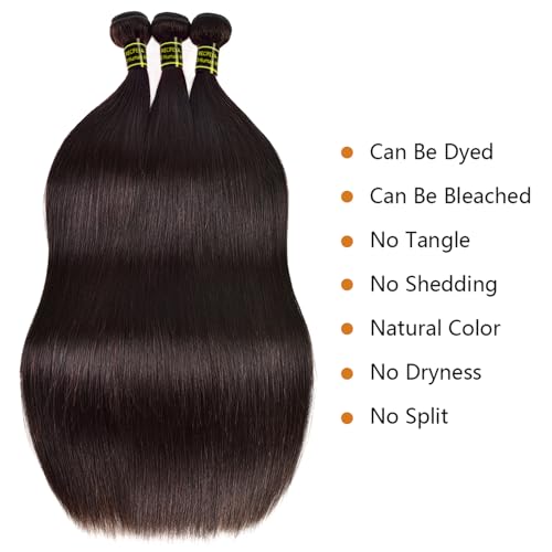 Straight Human Hair Bundles 24 26 28 Inch 100% Unprocessed Brazilian Remy Virgin 10A Straight Quick Weave 3 Bundles Deals Human Hair Extensions Natural Black